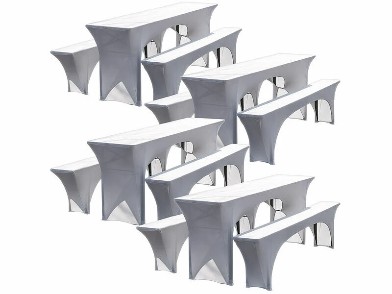 - 4 sets de 3 housses élastiques : 4 housses de table et 8 housses de banc