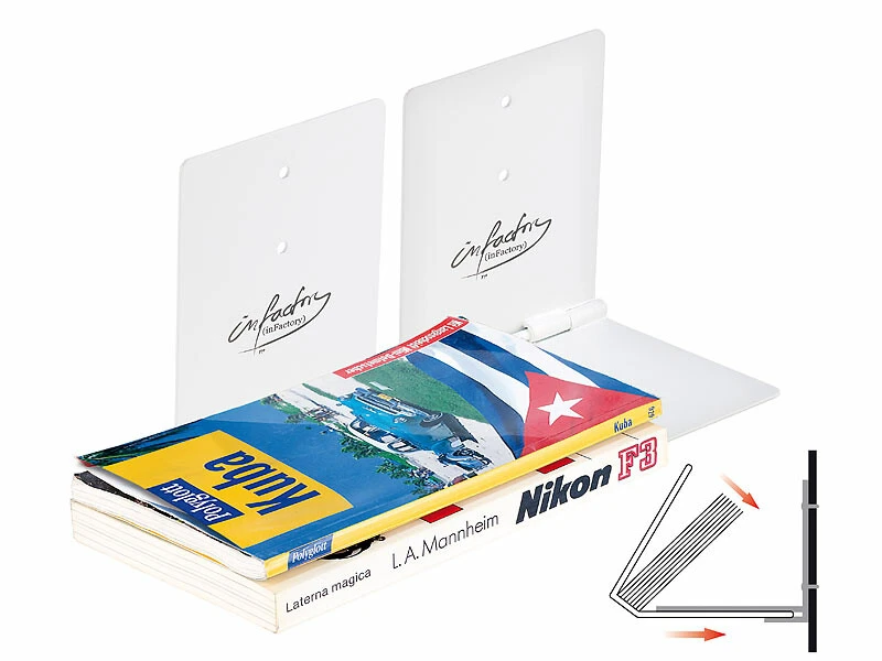 Grâce à la bibliothèque invisible, les piles de livres semblent flotter ! Il suffit de fixer le support métallique au mur et d’y déposer vos livres. L’effet est bluffant.