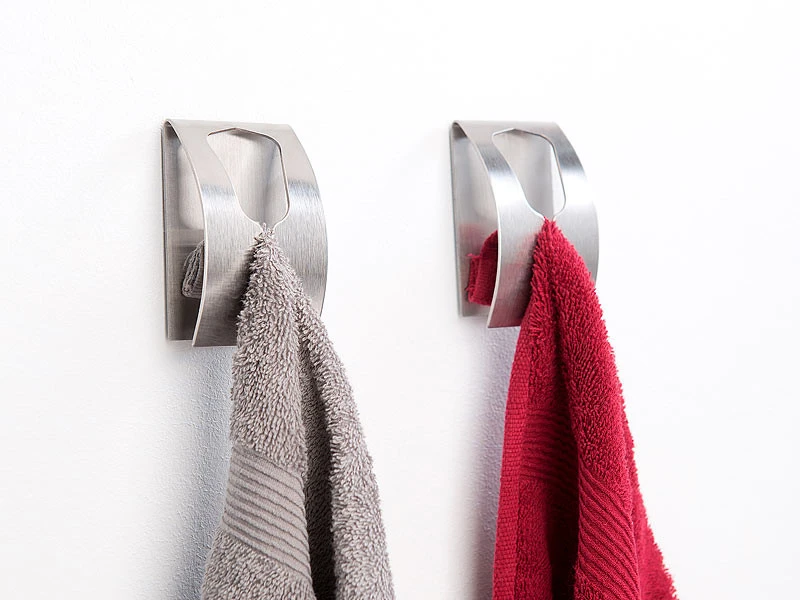 Inutile de percer des trous : ces porte-serviettes se collent simplement sur le carrelage. Grâce à une conception élégante et efficace, ils vous permettent d’accrocher vos serviettes dans la salle de bain, mais aussi un torchon dans une cuisine, avec ou sans œillet de fixation. Leur atout : en acier inoxydable, ils apportent un détail design dans votre intérieur.