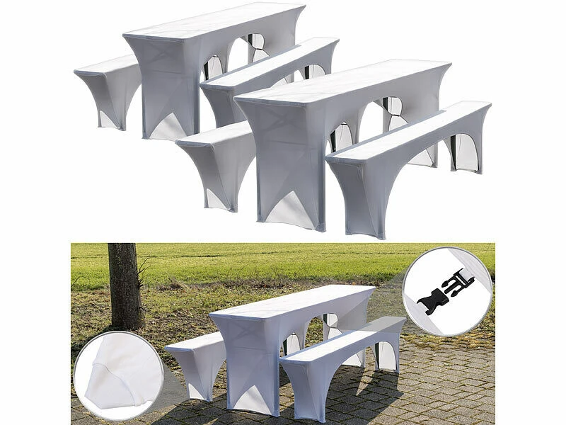 - 6 housses extensibles pour tables et bancs, coloris blanc de la marque Infactory
