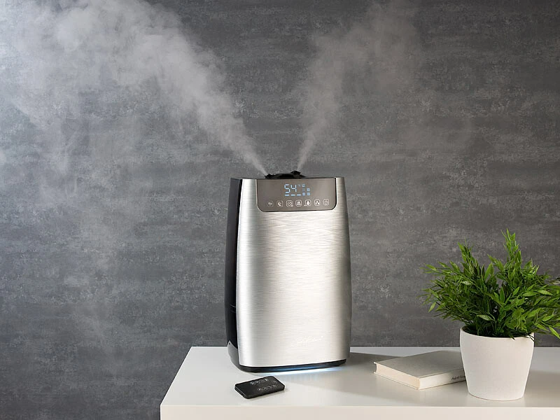 Profitez d’un air intérieur sain tout autour de vous : grâce à son intensité de vaporisation particulièrement élevée, votre humidificateur à ultrasons génère un air agréable même dans les grandes pièces. Les deux buses tournent sur 360° indépendamment l’une de l’autre. Ainsi la fine brume humidifie chaque recoin.