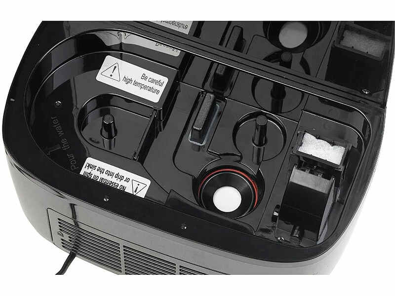 - 6 niveaux de nébulisation : 100 – 400 ml d’eau évaporée, à heure réglable, chaude ou froide, selon les besoins