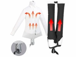 Une solution simple pour sécher une chemise et un pantalon rapidement. Avec ce système, vous n’avez même pas besoin de repasser vos affaires ! Glissez simplement votre chemise, chemisier, polo, t-shirt ou top sur le mannequin de défroissage, et votre pantalon sur le sèche-pantalon. Ensuite, il vous suffit de placez un sèche cheveux à l’intérieur pour que les plis sont ainsi éliminés efficacement par le flux d’air chaud.