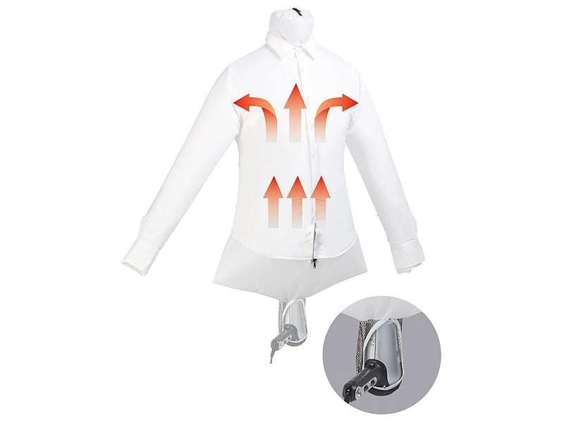 Glissez simplement votre chemise, chemisier, polo, t-shirt ou top sur le mannequin, puis placez un sèche cheveux à l’intérieur; avec le flux d’air chaud sur le vêtement, et les plis sont ainsi éliminés efficacement. Une fois l’utilisation terminée, le support se replie pour se ranger sans encombrer dans votre valise. Emportez-le dans vos voyages d’agrément comme vos déplacements professionnels !