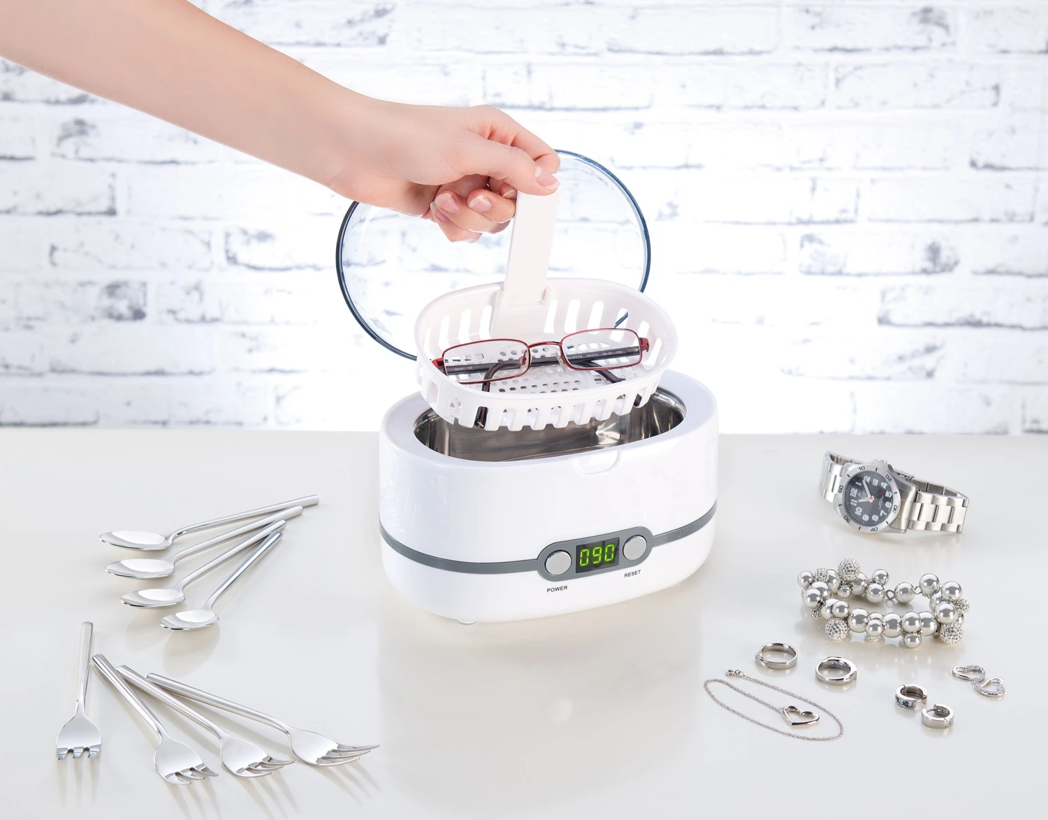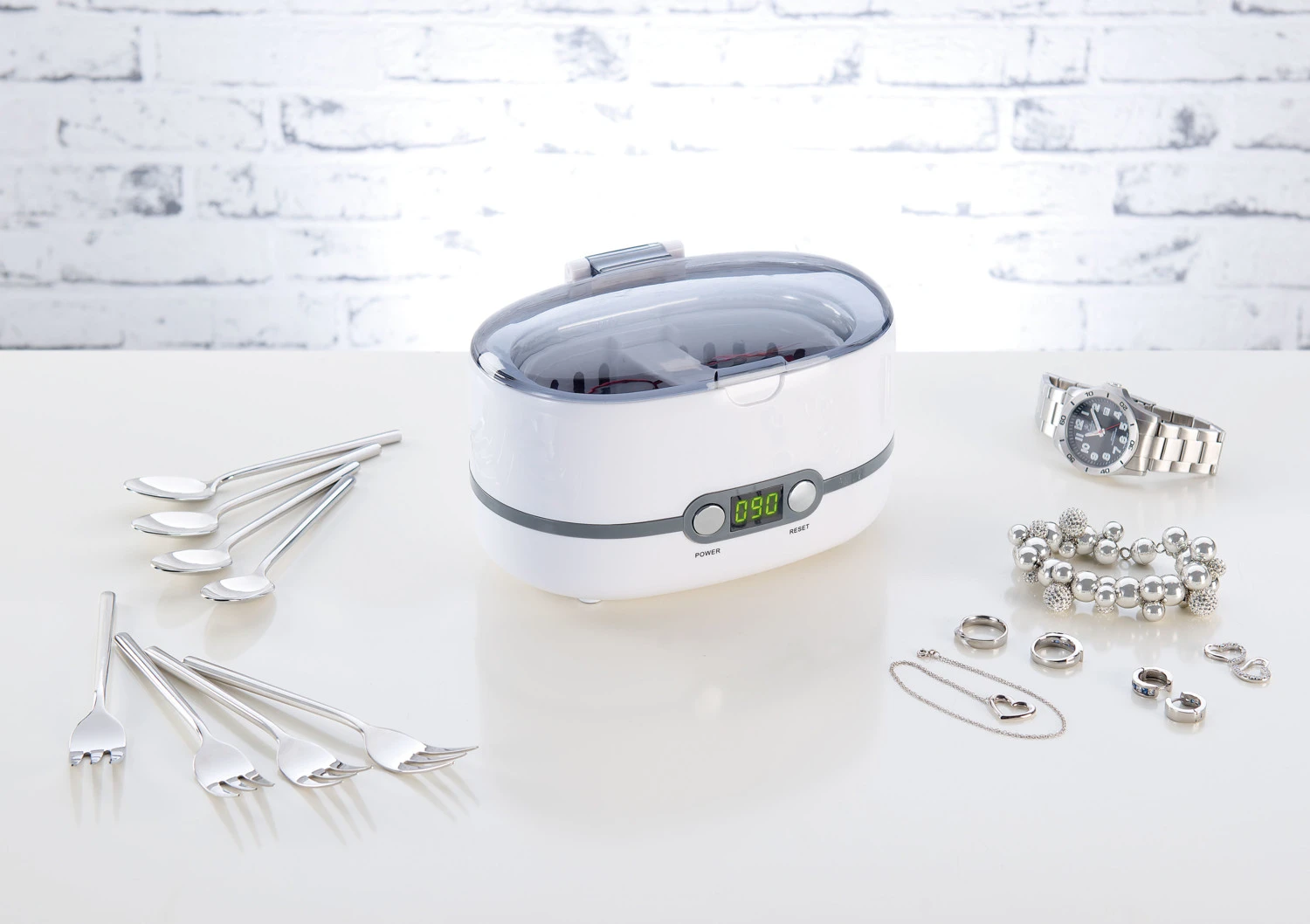 Le nettoyeur est également idéal pour le nettoyage de tête de rasage, de peignes, de montres, prothèses dentaires, etc.