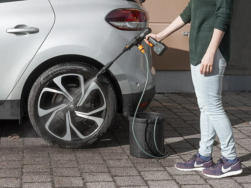 Totalement indépendant d’un raccordement à un réseau électrique ou à un robinet, le nettoyeur à pression est prêt à l’emploi partout et à tout moment. Il suffit de garder à disposition un seau rempli d’eau et c’est parti pour le grand nettoyage ! Vous pouvez même approvisionner l’appareil en eau de manière permanente en le raccordant à votre tuyau d’arrosage en un seul clic par le biais de l’adaptateur fourni. Ainsi, vous n’avez plus à vous soucier de l’approvisionnement en eau. Grâce à sa batterie longue durée et à une pression de 30 bar, vous pouvez éliminer même les saletés les plus tenaces. Et avec un poids plume d’à peine 2 kg, le nettoyeur à pression est en outre léger et maniable.