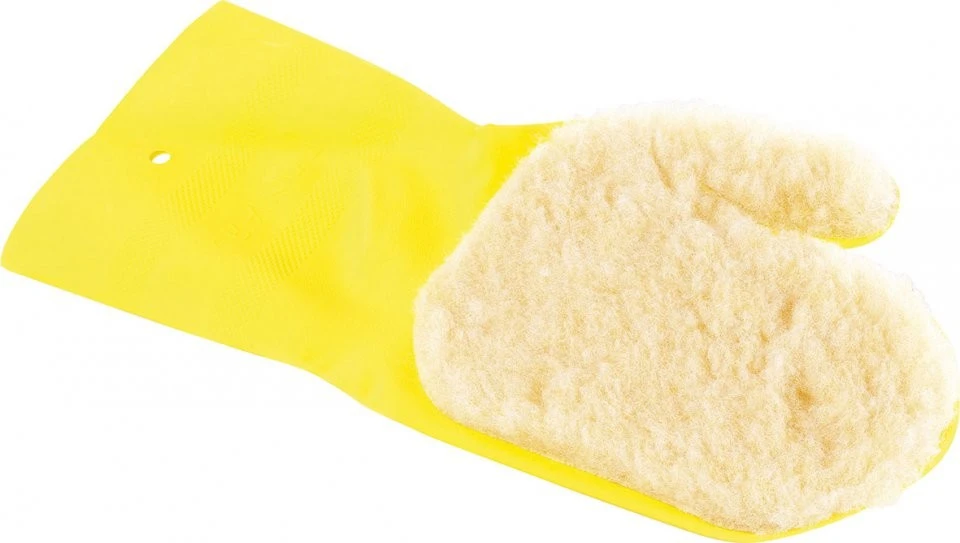 Redonnez à vos meubles tout leur brillant. Sur ce gant en latex est intégrée une éponge de lustrage en laine.