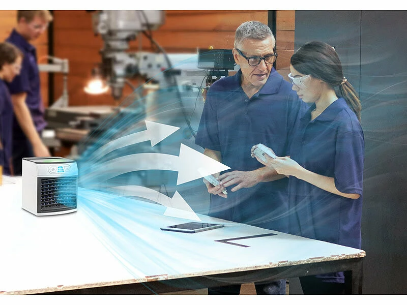 Moderne, compact et flexible, le rafraîchisseur d’air s’intègre à tous les bureaux grâce à sa taille, mais aussi grâce à son design moderne. Comme il fonctionne sur prise USB, il peut se brancher sur une batterie de secours pour vous suivre lors de vos déplacements.